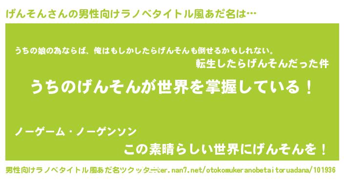 | ヒーロー風カッコイイあだ名 | 『ウルトラげんそんマン』『仮面ゲンダー』 |