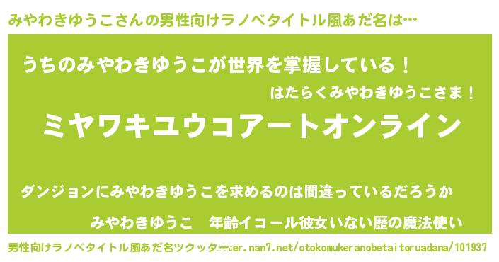| 女子向けラノベタイトル風あだ名 | 『みやわきゆうこ姫と円卓の騎士』 |