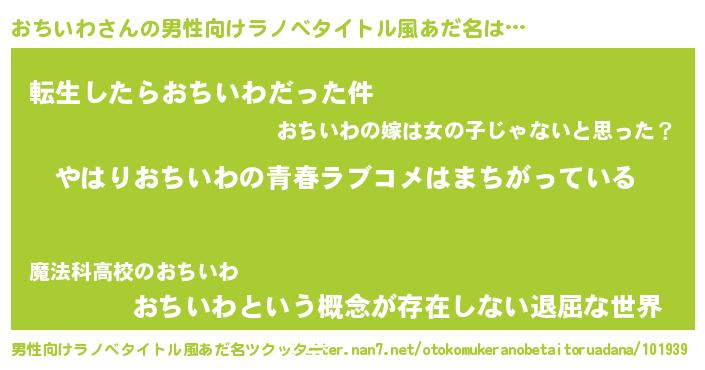 | 女子向けラノベタイトル風あだ名 | 『おちいわ伯爵の花嫁』 |