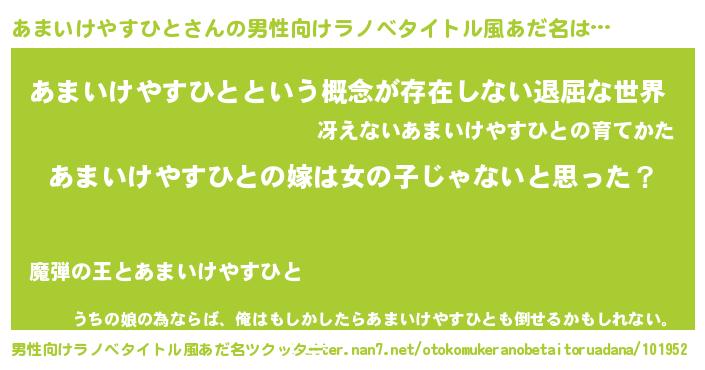 | 女子向けラノベタイトル風あだ名 | 『あまいけやすひとの卵を拾いまして』 |