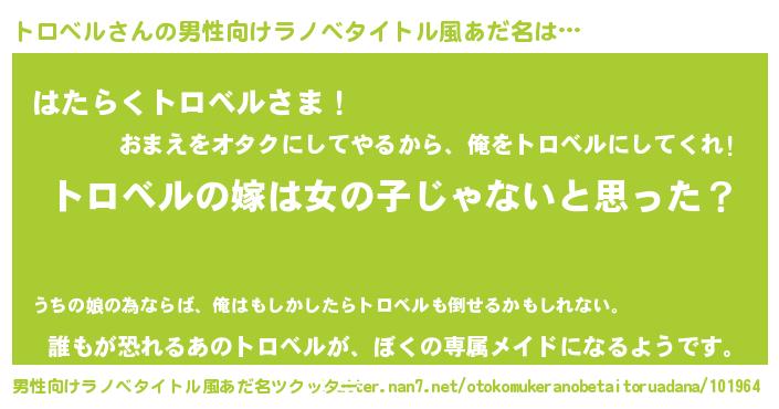 | 女子向けラノベタイトル風あだ名 | 『トロベル様がみてる』 |