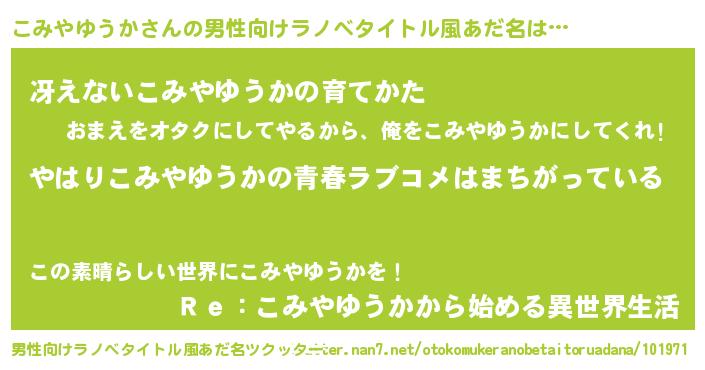 | 女子向けラノベタイトル風あだ名 | 『こみやゆうかの雑貨屋さん』 |