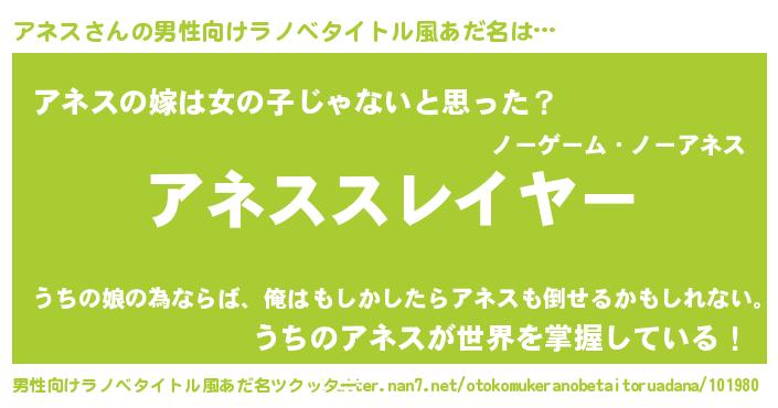 | 胡散臭い通販商品みたいなあだ名 | 『信頼と実績のペンダント…その名も「アネス」』 |