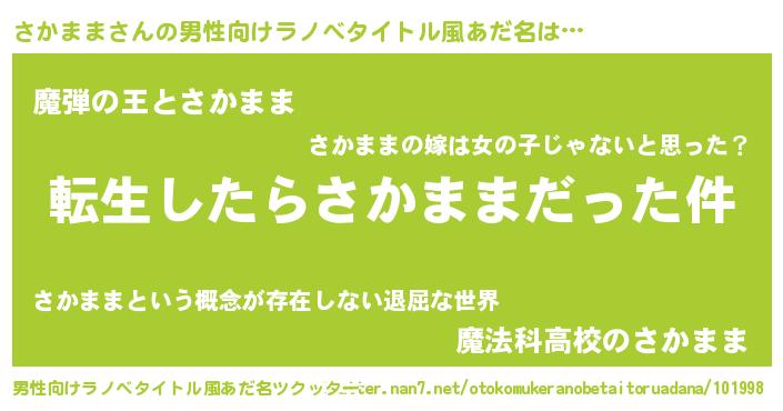 | 胡散臭い通販商品みたいなあだ名 | 『世界中を虜にした世界で10本だけ現存している希少なブランデー…その名も「さかまま」』 |
