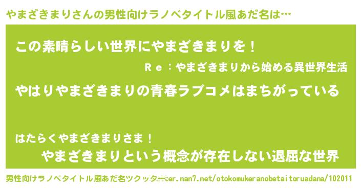 やまざきまりさんの男性向けラノベタイトル風あだ名をツクッター!