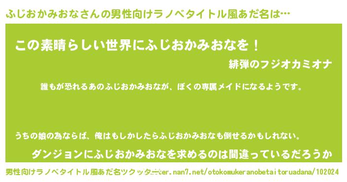 | 意味不明あだ名 | 『永久保存ふじおかみおな』 |
