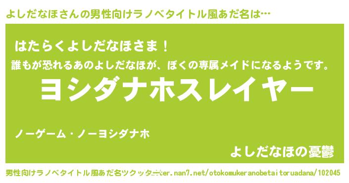 | 肩書あだ名 | 『よしだなほ中将』『よしだなほ御曹司』 |