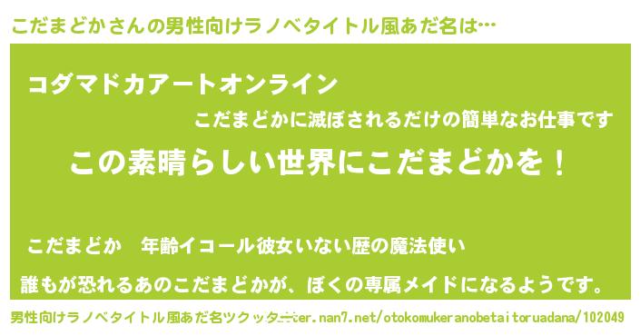 | 胡散臭い通販商品みたいなあだ名 | 『あなたにだけ特別に提供する限定10本のレアな日本酒…その名も「こだまどか」』 |