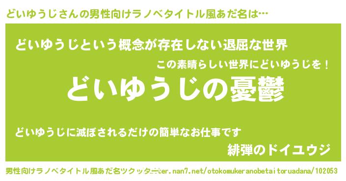 | 胡散臭い通販商品みたいなあだ名 | 『必ず成功するブレスレット…その名も「どいゆうじ」』 |