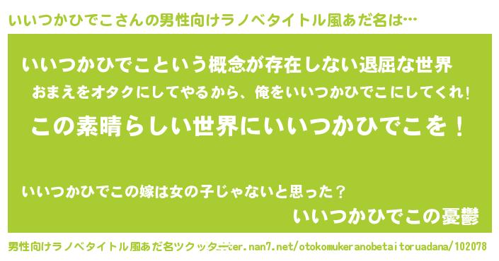 | 女子向けラノベタイトル風あだ名 | 『乙女ゲームの破滅フラグしかない悪役いいつかひでこに転生してしまった…』 |