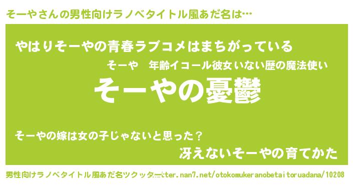 | 胡散臭い通販商品みたいなあだ名 | 『必ず成功するブレスレット…その名も「そーや」』 |