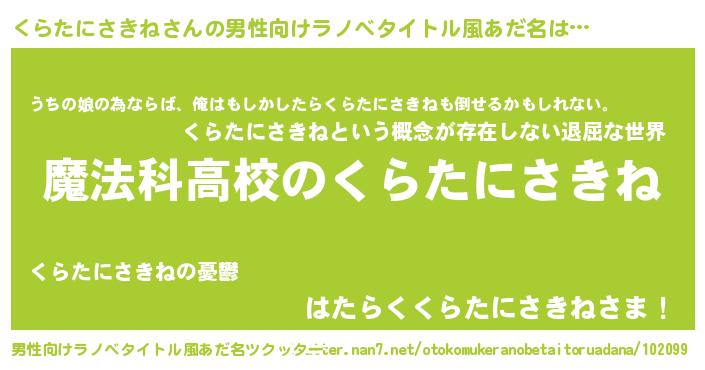 | 女子向けラノベタイトル風あだ名 | 『くらたにさきねなんてお断りですっ。』 |