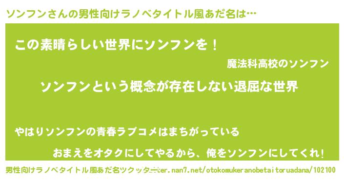 | 胡散臭い通販商品みたいなあだ名 | 『絶対に幸福をもたらす健康食品…その名も「ソンフン」』 |