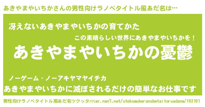 | 胡散臭い通販商品みたいなあだ名 | 『モテモテ間違いなし水晶球…その名も「あきやまやいちか」』 |