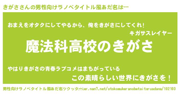 | 女子向けラノベタイトル風あだ名 | 『きがさなんてお断りですっ。』 |