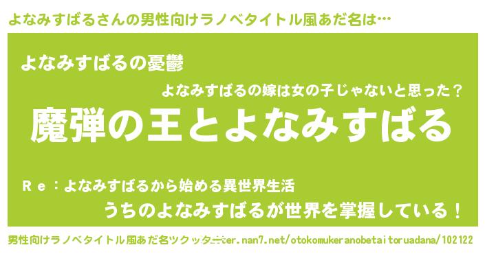 | 女子向けラノベタイトル風あだ名 | 『乙女ゲームの破滅フラグしかない悪役よなみすばるに転生してしまった…』 |