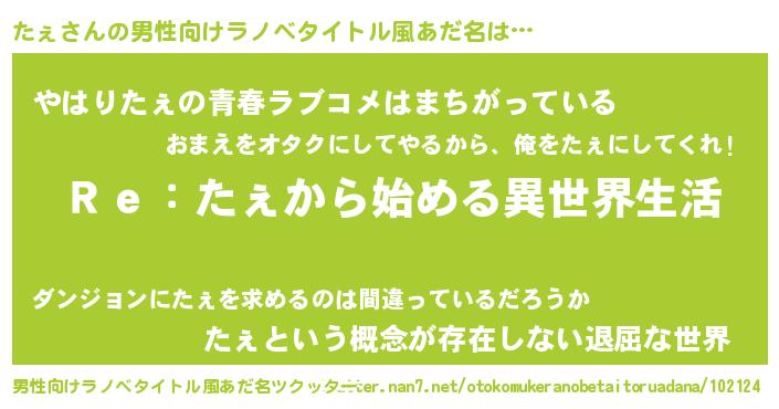 | ヘコむあだ名 | 『なまこ酢』『たぇ(苦笑)』『たぇを』 |