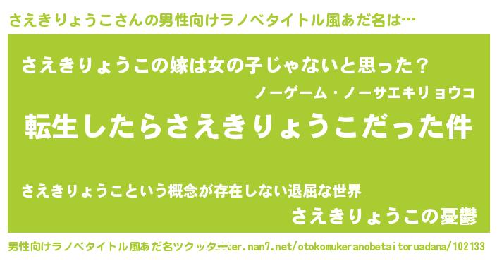 | 料理風あだ名 | 『さえきりょうこごはん』 |
