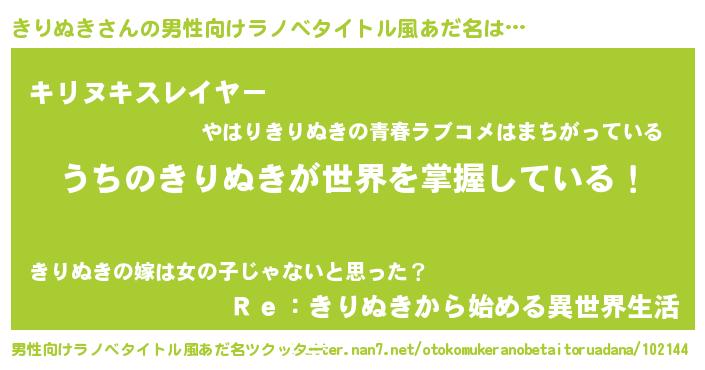 | ヒーロー風カッコイイあだ名 | 『究極戦士キリヌキ』『天弓騎士キリ』 |