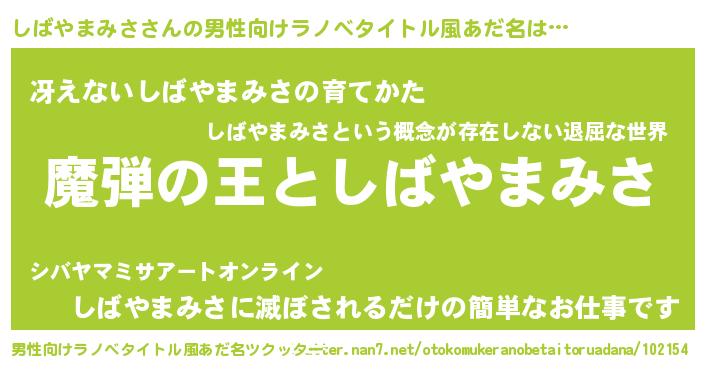 | ヒーロー風カッコイイあだ名 | 『仮面シバダー』『ネオシバヤマミサ』 |