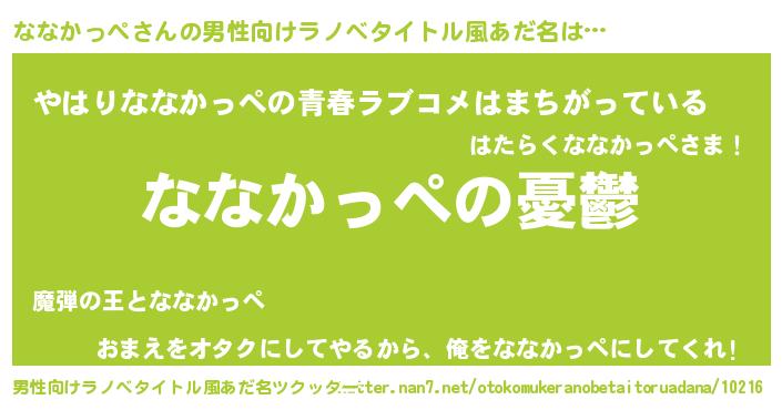 | 女子向けラノベタイトル風あだ名 | 『(仮)ななかっぺのやんごとなき事情』 |