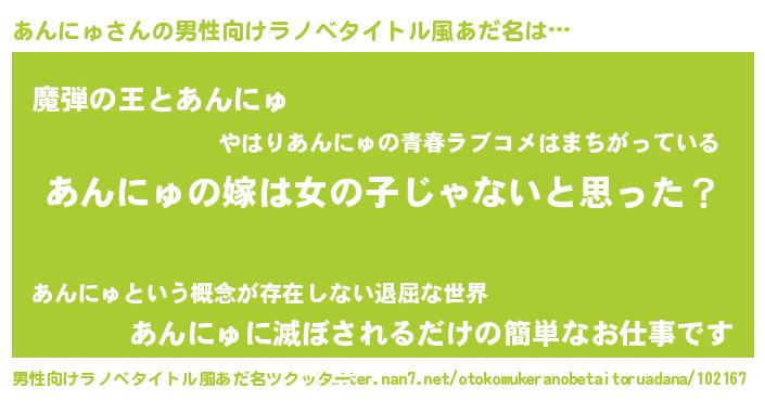 | 意味不明あだ名 | 『とにかく怪しいあんにゅ』 |