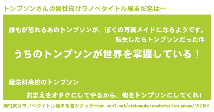 | 女子向けラノベタイトル風あだ名 | 『男装トンプソンの憂鬱な任務』 |