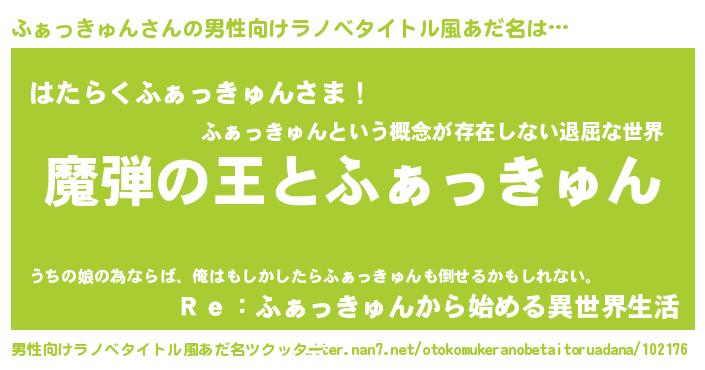 | 伝説のあだ名 | 『聞きしに勝る勇者ふぁっきゅん』 |