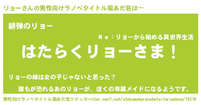 | ヒーロー風カッコイイあだ名 | 『ネオリョー』『超時空戦士リョー』 |
