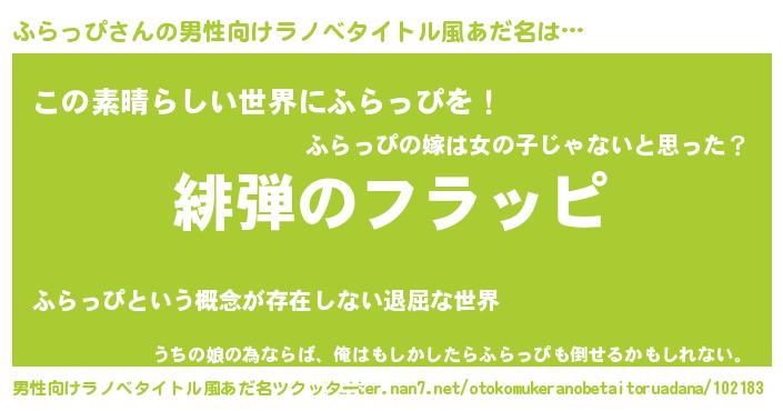 | 胡散臭い通販商品みたいなあだ名 | 『ハリウッド女優が絶賛した100年もののヴィンテージワイン…その名も「ふらっぴ」』 |