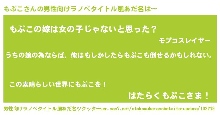 | 女子向けラノベタイトル風あだ名 | 『もぷこの婚約者』『もぷこ様がみてる』 |