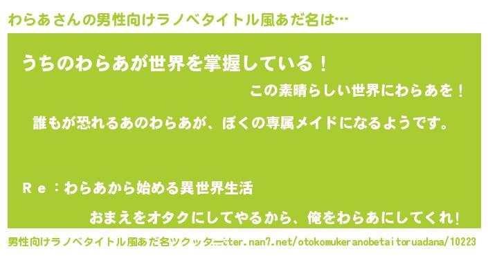| 伝説のあだ名 | 『古文書に記された勇者わらあ』 |