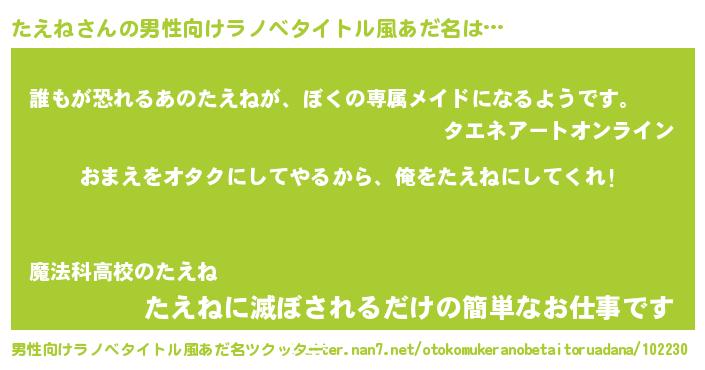 | ヒーロー風カッコイイあだ名 | 『正義の使者たえね』『ネオタエネ』 |