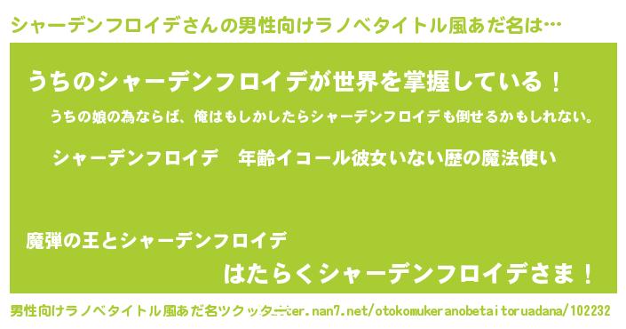 | 女子向けラノベタイトル風あだ名 | 『シャーデンフロイデの玉の輿計画!』 |
