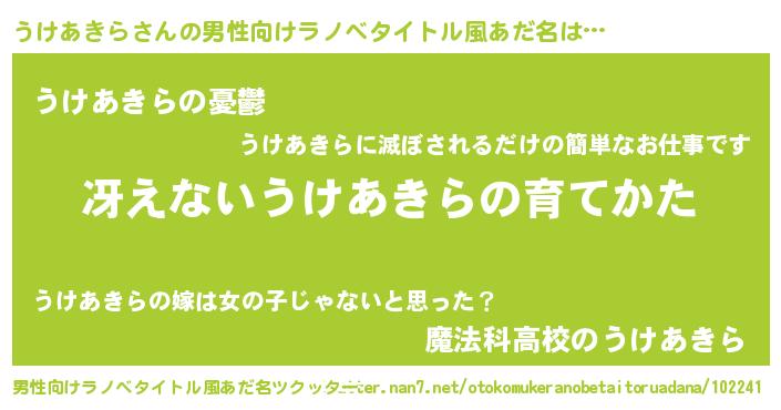 | 意味不明あだ名 | 『ペロリンうけあきら』『自称うけあきら』 |