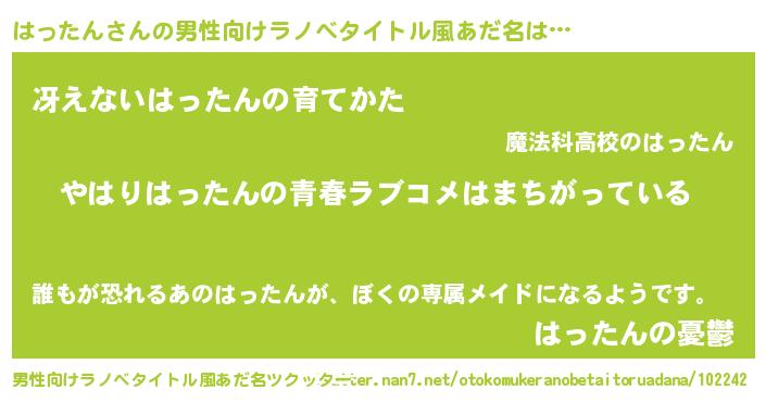| 女子向けラノベタイトル風あだ名 | 『はったん伯爵の花嫁』 |