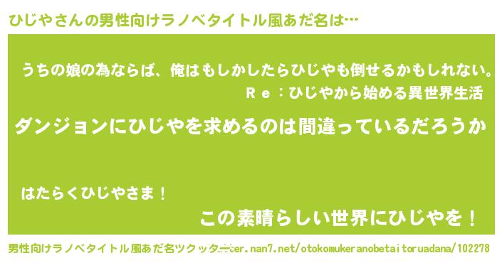 | 女子向けラノベタイトル風あだ名 | 『ひじやの卵を拾いまして』 |