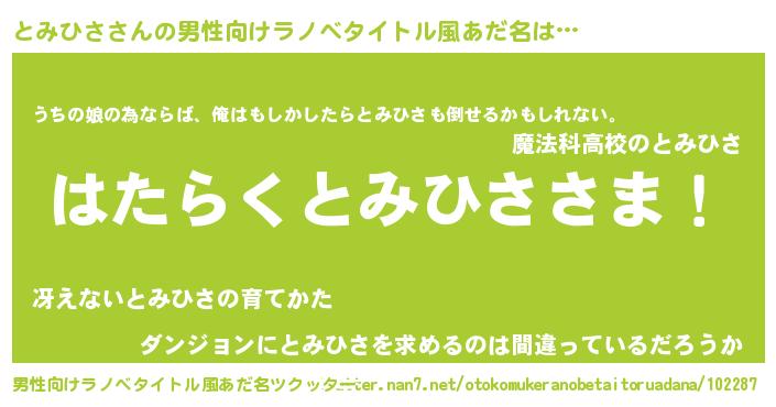 | ヒーロー風カッコイイあだ名 | 『ウルトラとみひさマン』『幻影騎士トミ』 |