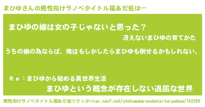 | 胡散臭い通販商品みたいなあだ名 | 『世界が平和になる高級そうな壺…その名も「まひゆ」』 |