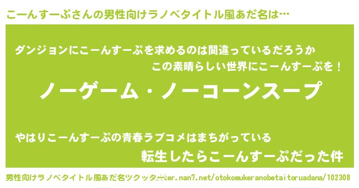 こーんすーぷさんの男性向けラノベタイトル風あだ名をツクッター!