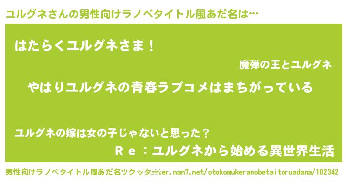 | 女子向けラノベタイトル風あだ名 | 『ユルグネの雑貨屋さん』『闇のユルグネ』 |