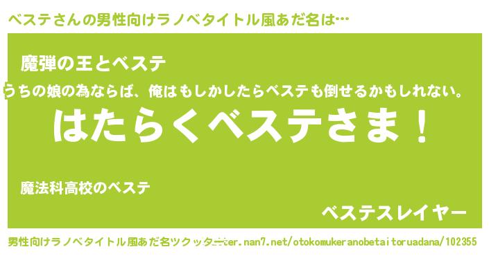| 意味不明あだ名 | 『住所不定無職ベステ(14歳)』『自称ベステ』 |