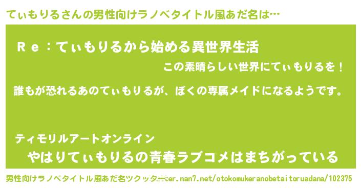 | 女子向けラノベタイトル風あだ名 | 『てぃもりるの契約王妃』 |
