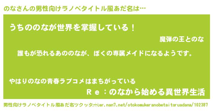 | ヘコむあだ名 | 『のな(小並感)』『つくし』『のなを』 |