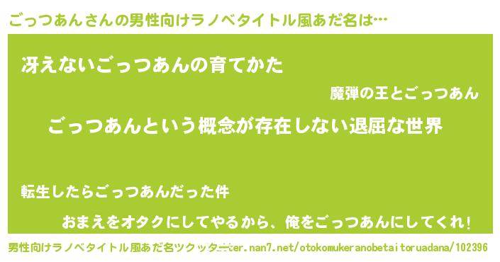 | 女子向けラノベタイトル風あだ名 | 『異世界で失敗しない100のごっつあん』 |