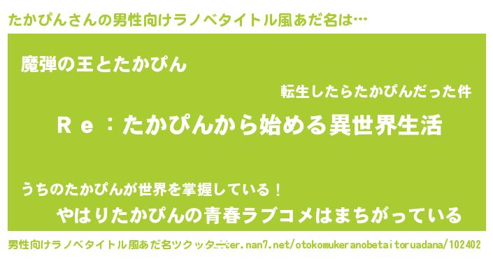 | 女子向けラノベタイトル風あだ名 | 『たかぴんストレイドッグス』 |