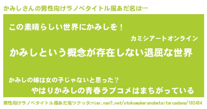 | ポケモン風あだ名 | 『ゼニカミ』『カーミイ』『ヒカミシ』 |