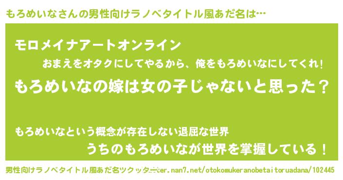 | 欧米人風あだ名 | 『ウサインもろめいな』 |