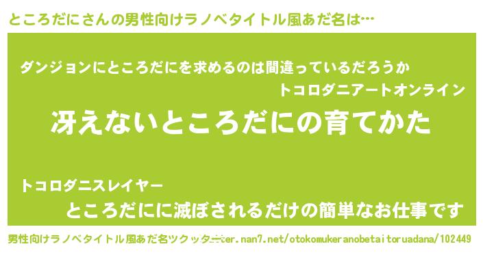 | 胡散臭い通販商品みたいなあだ名 | 『伝統あるサプリメント…その名も「ところだに」』 |