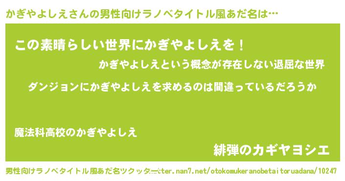 | 女子向けラノベタイトル風あだ名 | 『かぎやよしえは平凡を望む』 |